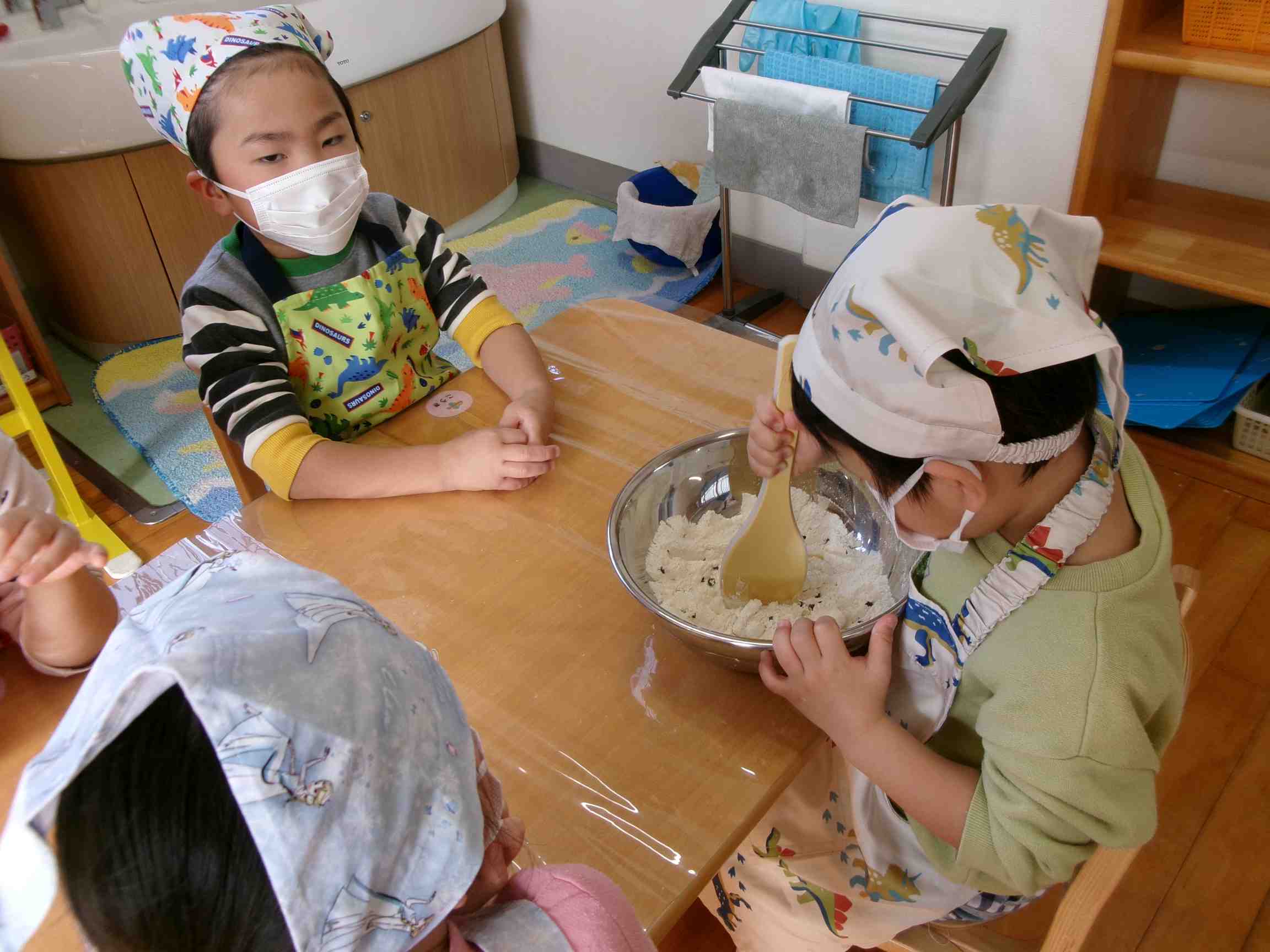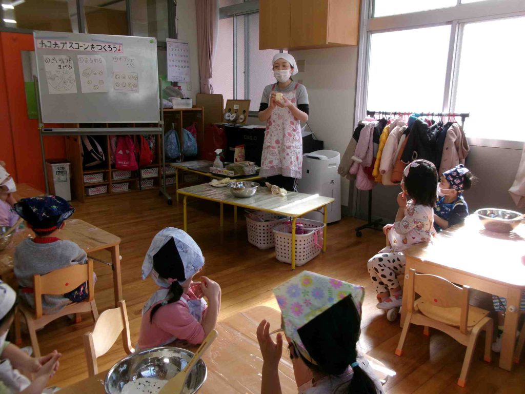クラスのお友だちが、スコーンづくりをしました。