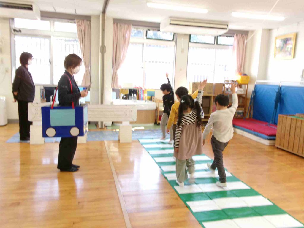今日(18日)は、年長児対象の交通安全教室がありました。